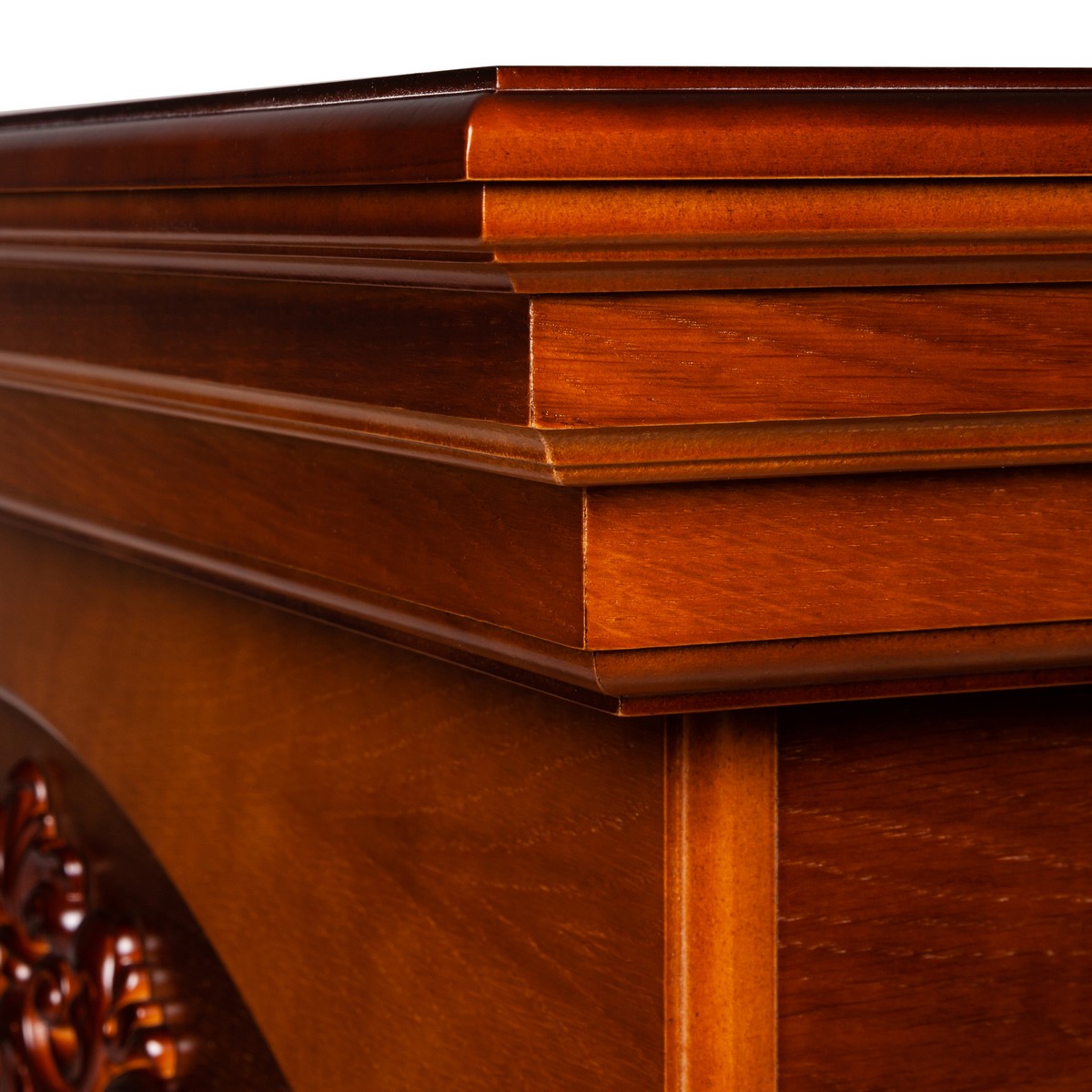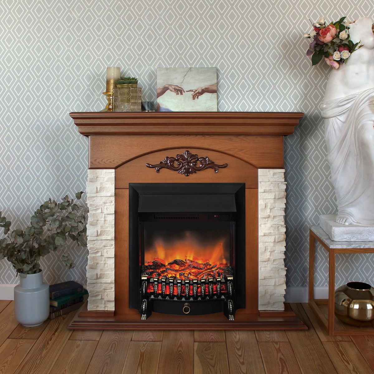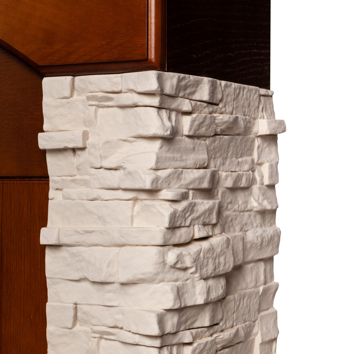 При этом вы получаете не просто технику, а полноценный элемент декора. Отделка из натурального шпона и искусственного камня выглядит настолько аутентично, что гости не сразу поверят, что пламя — электрическое.